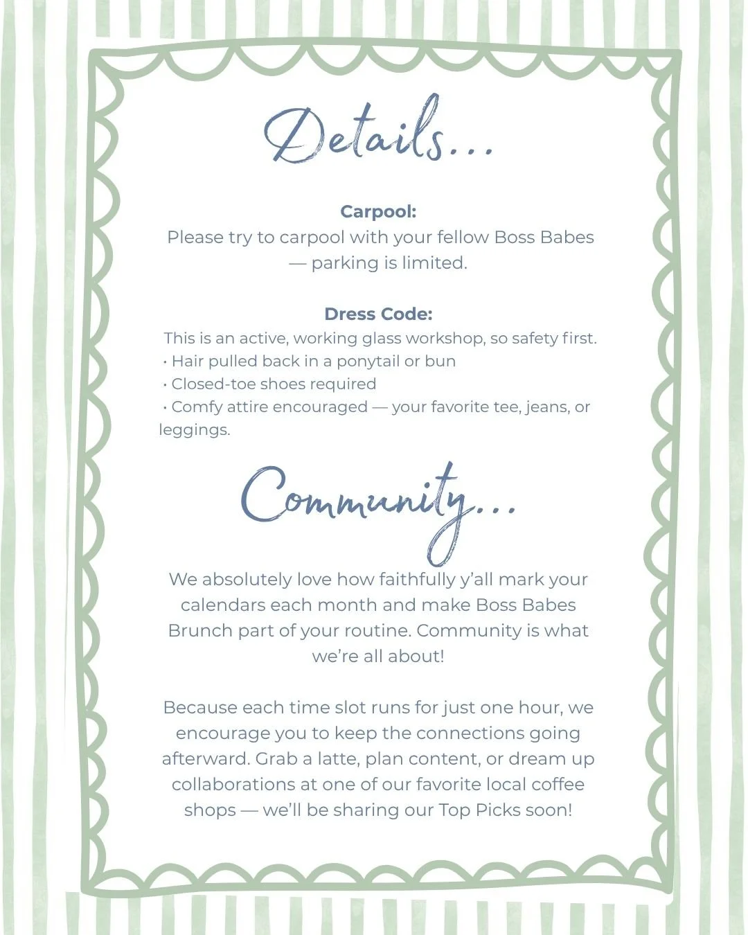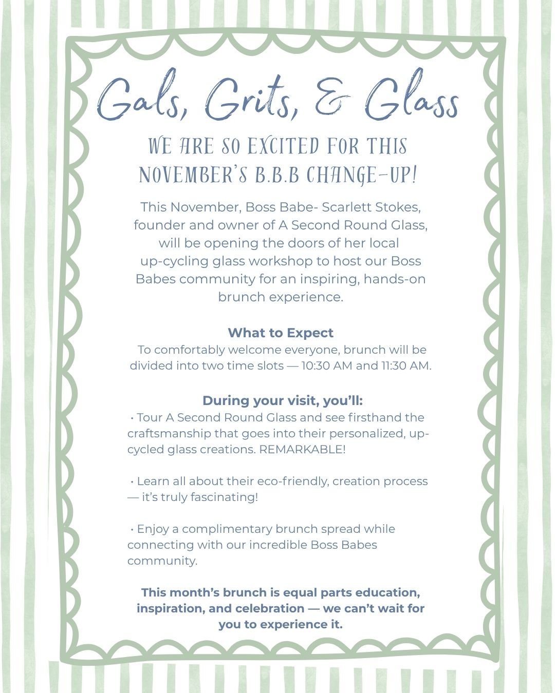 Our Boss Babe Brunches remain free because of the incredible generosity of each of you. If you’re able, please consider making a donation today to help us continue offering these empowering events. Thank you so much for your continued support!